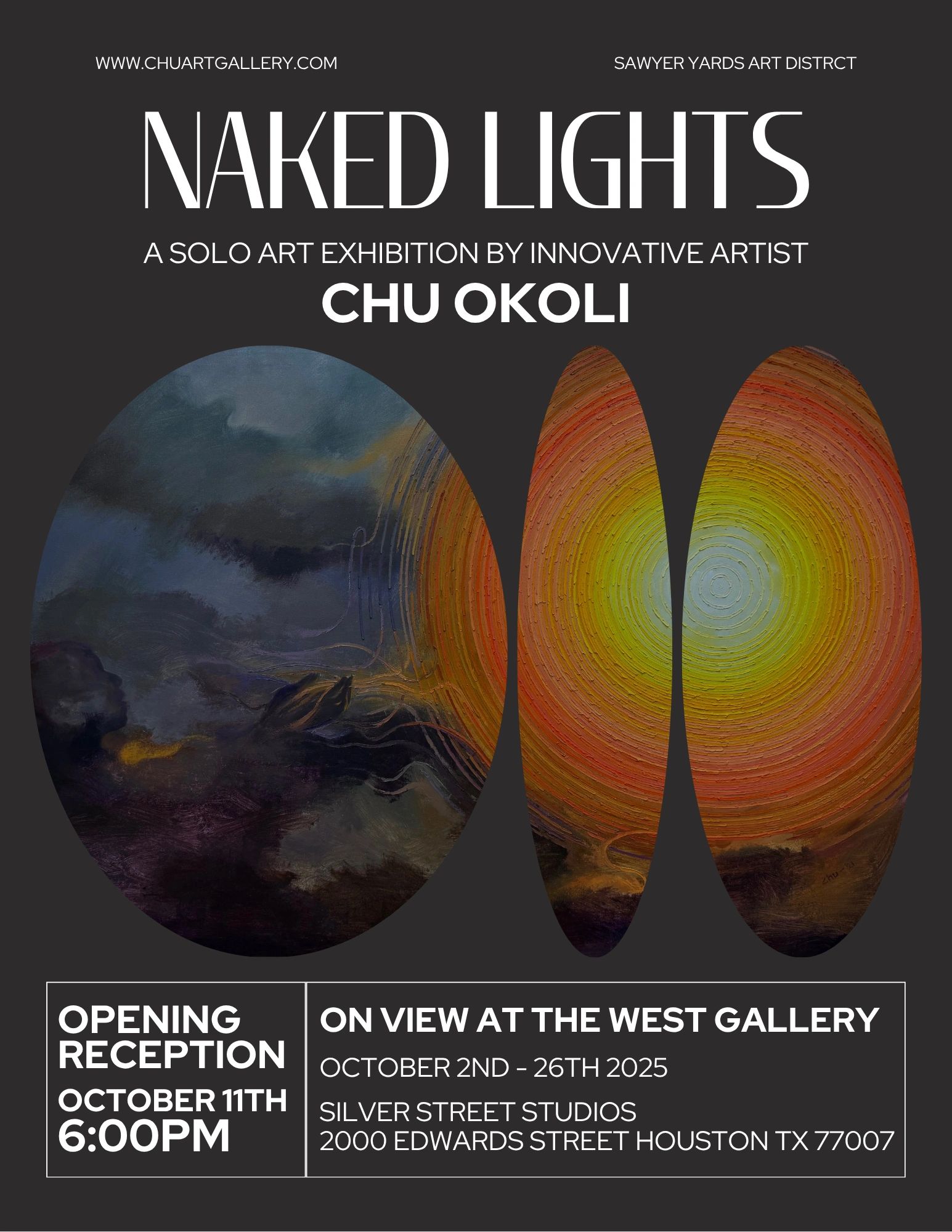 Houston TX and Manhattan NYC based artist Chu Okoli is an accomplished and world-renowned visual artist trained in classical drawing and painting. Taking inspiration also from his background as a sculptor, installation artist, designer, writer, innovator, and visionary - he forged a new style in painting using concentric circles as a filter through which he sees the universe and the world around him.